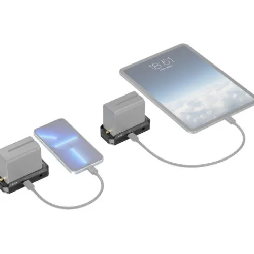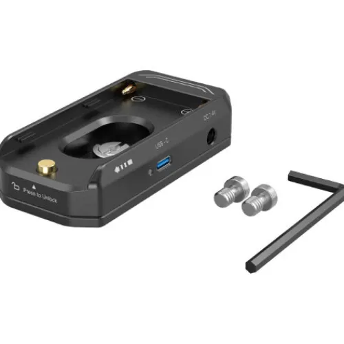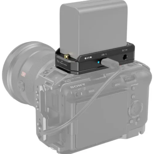 The SmallRig NP-F Battery Adapter Mount Plate 3168B allows NP-F batteries (including original Sony and third-party options) to power BMPCC 4K/6K/6K Pro, Canon R5 C, and other mirrorless cameras. Constructed from durable aluminium alloy with gold-plated electrical contacts, it ensures improved conductivity. The plate features a self-locking button for quick battery installation and a 1/4″-20 threaded hole for easy attachment to the cage. It provides 36W 7.4V / 12V DC output and a 36W USB-C port for charging or powering devices, with short circuit protection and automatic wake-up/sleep functions. LED indicators display USB charging, battery connection, and battery life status.