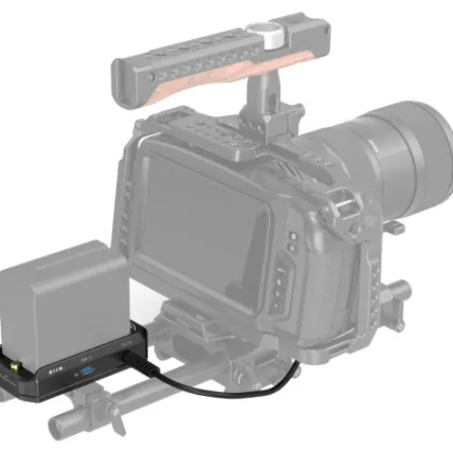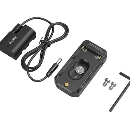 The SmallRig NP-F Battery Adapter Mount Plate Kit (Advanced Edition) 4340 is designed to provide long-lasting power for BMPCC 4K/6K, Canon R5C, and various mirrorless cameras using NP-F batteries, including both original Sony and third-party options. The aluminium alloy plate features gold-plated electrical contacts for durability and conductivity. It includes a self-locking button for quick battery installation and a 1/4″-20 threaded hole for easy attachment to the camera cage. The plate offers 36W 7.4V/12V DC outputs and a 36W USB-C port for charging or current output. With built-in short circuit protection, automatic wake-up/sleep functions, and LED indicators for battery status, this kit ensures reliable, safe, and efficient power management.