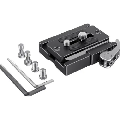 The SmallRig Quick Release Clamp and Plate (Arca-type Compatible) 2144B includes an Arca-type clamp and a plate for versatile mounting. The clamp’s tightness can be easily adjusted using the tiny screw on the lever, ensuring cross-compatibility with most Arca-type plates. The plate is attached to the bottom of cameras or cages using screws, providing a secure fit. The clamp features multiple 1/4″-20 and 3/8″-16 threaded holes, along with thorough mounting holes on the bottom, allowing you to mount it on tripods, jibs, and other devices for a variety of shooting setups.