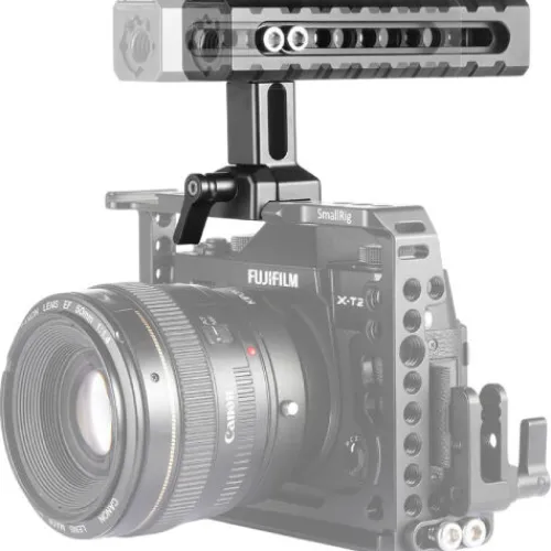 The SmallRig DSLR Action NATO Handle 1955 is a sliding top handle designed for dynamic shoots, offering quick release attachment and detachment without the need for screws. Simply slide it onto the Safety NATO Rail and tighten the thumbscrew. In addition to sliding left to right to maintain camera balance, it can also be adjusted forwards and backwards to find the optimal balance point for your rig. The handle features three shoe mounts on the top, front, and back, allowing you to attach light accessories such as microphones or magic arms. It includes an ARRI accessory mount pattern for compatibility with ARRI extension blocks and provides 1/4″ & 3/8″ mounting points for additional accessories. A 1/4″ spanner is also included for convenient access, ensuring ease when fine-tuning the balance of your camera and rig.