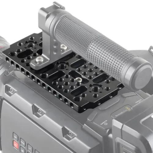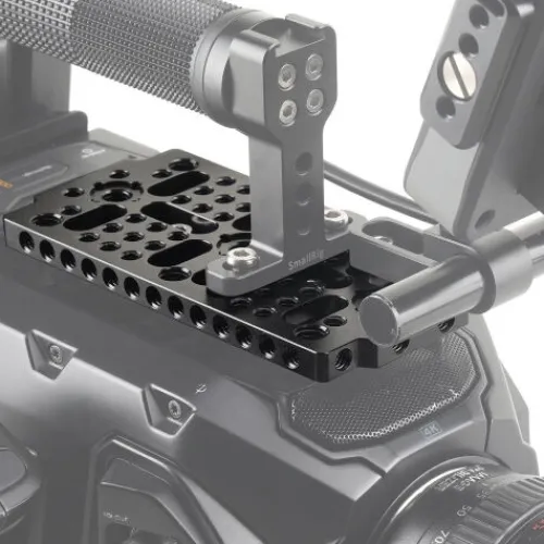 The SMALLRIG Multi-purpose Cheese Plate 1681 is a versatile top-mount plate designed for the Blackmagic URSA Mini Camera. It features a range of 9mm spaced mounting holes, allowing for the attachment of various accessories like railblocks, top handles, dovetails, and more. The plate also includes built-in ARRI locating holes, making it compatible with ARRI extension blocks for added flexibility and convenience in your setup.