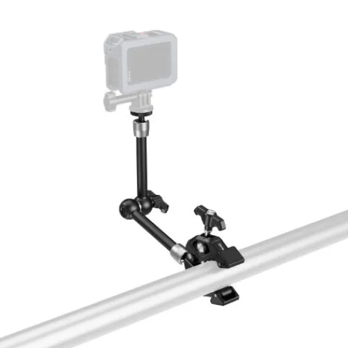 The SmallRig Crab-Shaped Clamp with Magic Arm 4454 includes a versatile magic arm, crab-shaped clamp, and action camera mount. The 1/4″-20 screw end allows for mounting an action camera, monitor, LED light, microphone, and more. The clamp securely attaches to tubes, tables, tripod legs, or stabiliser rings up to 50mm wide. Anti-twist design and swivel tip adjustments improve stability on both flat and rounded surfaces. Built-in rubber pads protect surfaces, and the mount is compatible with GoPro, Insta360, and DJI Osmo Action cameras.