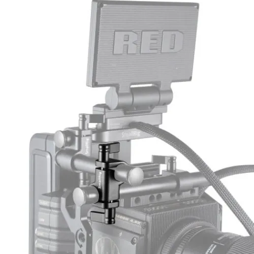 SmallRig 90 Degree 15mm Rod Clamp 2069 are used to attach 15mm rods for different shooting scenarios. It could be locked tight via 2 wingnuts. It could attach 15mm rod and then 15mm Micro Rod(1.5″) with 1/4″ Thread 1552 for monitor. It features quick attachment and release during this process. It could attach 15mm rod of dual-rod system for run-and-gun operation. It could be mounted on 15mm Rod with 1/4 Inch Screw Hole 1182 for magic arm whereby monitor could be attached. It could attach 15mm rod and then Microphone Shock for microphone.
