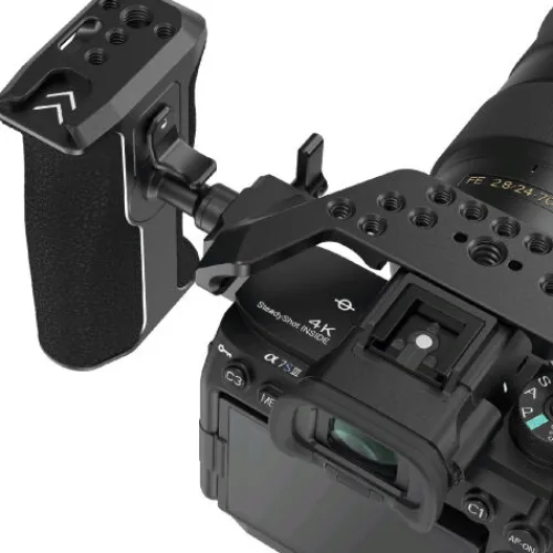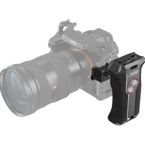 The SmallRig Rotating NATO Handle (Left Side) 3260 allows for easy adjustment of your camera’s shooting angle. Featuring a comfortable, anti-slip silicone surface that is also sweat-proof, the handle provides a secure grip. It mounts quickly to the side of the cage via a NATO clamp, and if your cage lacks a NATO rail, it can be expanded using BUN2468 for compatibility with different cages. The handle allows for smooth 360-degree rotation, which can be locked in place by releasing the unlock button. It includes 1/4″-20 and 3/8″-16 threaded holes, as well as a cold shoe for attaching accessories. Additionally, it is compatible with the Hand Strap PAC2456 to further enhance grip comfort and shooting stability.