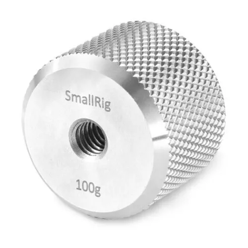The SmallRig 100g Counterweight AAW2284 is designed to balance cameras on gimbal stabilisers by adjusting its quantity and position. Compatible with DJI Ronin S, Zhiyun Crane series, and Weebill Lab Gimbals, it features a 1/4″-20 screw on one end and a 1/4″-20 threaded hole on the other, allowing multiple counterweights to be stacked as required. Available in both 100g and 200g sizes, this counterweight is ideal for use with SmallRig Counterweight mounting plates 2274, 2277, and 2283. An optional 200g Counterweight (2285) is also available for additional balance needs.