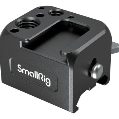 The SmallRig NATO Clamp Accessory Mount for DJI RS 2 / RSC 2 / RS 3 / RS 3 Pro / RS 4 / RS 4 Pro 3025 is designed for attaching accessories like monitors, microphones, and wireless devices to the side of the stabiliser. It can be quickly installed on either side of the stabiliser via a NATO clamp, secured with a rotary knob for quick-release functionality. Featuring a 1/4″-20 threaded hole and an ARRI 3/8″-16 locating hole, it allows the attachment of a monitor with Magic Arm 2115 or an action camera with 2163, providing dual camera views. The 1/4″-20 threaded hole also includes two locating holes compatible with the DJI RS 2 smartphone mount. Additionally, the integrated cold shoe mount is perfect for attaching a microphone, sound receiver, or other wireless devices. An anti-removal stud on the NATO clamp ensures that equipment remains securely in place.