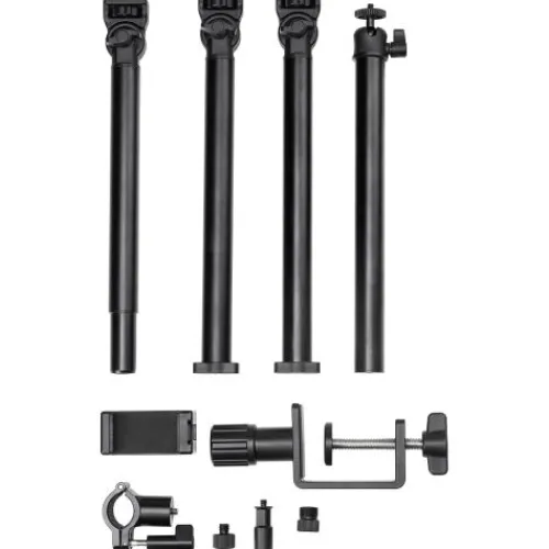 The SmallRig Live Desktop Camera Bracket DT-50 4456 is ideal for indoor live broadcasts, video conferencing, top-down or angled photography, and more. Crafted from lightweight and durable aluminium alloy, the bracket features a detachable C-clamp and a 3-section articulated arm, allowing for 360° angle adjustments and 180° rotation at each section. Supporting up to 2.700 kg tilted and 3.300 kg horizontally, its solid gear structure ensures stable load-bearing. The included crab-shaped clamp and holding arm can support an additional device, while the detachable 360° ball head enhances shooting flexibility. With a 1/4″-20 screw, adapters, and compatibility with various devices like cameras, lights, microphones, and phones, this versatile bracket is designed for efficiency and customisation.
