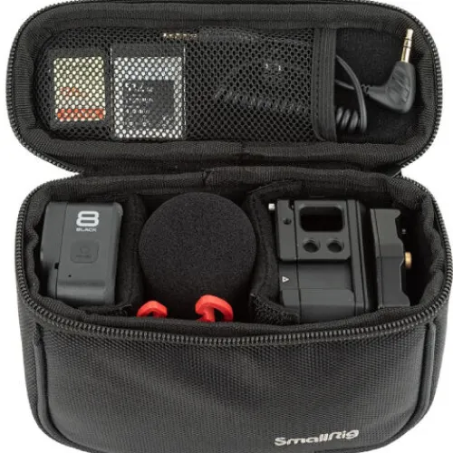 The SmallRig Storage Bag 3704 offers a practical solution for organising and storing small camera accessories, helping to prevent them from being lost or difficult to carry. Designed to hold follow focus 3010, action cameras, compact cameras (such as DJI, Insta360, GoPro), microphones, LED lights, and small V-port batteries, the bag features inner compartments for power and communication cables, as well as memory cards. It also includes a carry handle on top and side slots for easy access, ensuring a neat and efficient storage experience.
