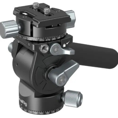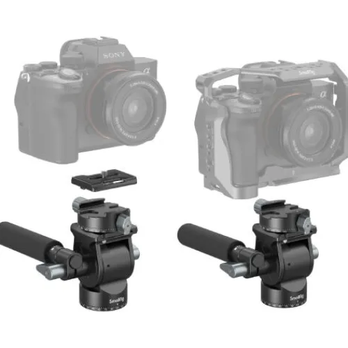 The SmallRig Lightweight Fluid Video Head 3457B is specially designed for video and photography. Featuring panoramic panning and compatibility with the Arca-Swiss QR system, it can be directly fitted with Arca-Swiss cages and L brackets. The centre of gravity can be adjusted forward or backward using the side knob, ideal for large lenses or when mounting the camera horizontally. The head includes a removable telescopic handle that supports a 360° swivel and a 1/4″-20 threaded hole for attaching accessories such as a magic arm, monitor, microphone, image transmitter, or camera. A built-in spanner is also provided for easy removal or installation of quick-release plates.