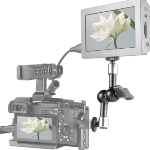 This mount is equipped with 1/4″ screws at both ends, allowing you to attach a monitor on one end and secure accessories with 1/4″-20 threaded holes on the other, such as a cage, NATO Rail 1973, 15mm Rod 1182, or Quick Release Rod Clamp 1976. The 1/4″ screw includes a rubber cushion to prevent monitor scratches and ensure a secure fit. Featuring an ergonomic wingnut, it allows easy angle adjustments to suit your needs.