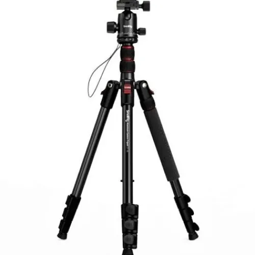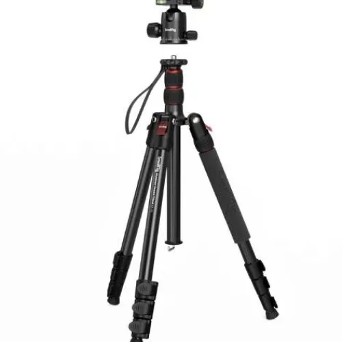 SmallRig CT-10 Aluminium Camera Tripod 3935 is designed for videoing, filming, live streaming, and other photography needs. It features a 1/4″-20 screw for accessory attachment and a 1/4″-20×3/8”-16 dowel screw for enhanced compatibility. Extending up to 180cm and folding to 43cm, this compact tripod weighs just 1.530 kg, making it ideal for outdoor photography. The 360° rotating metal ball head, with a φ 3.6 cm ball, offers durability and stability, while the robust aluminium alloy feet support up to 15 kg. Three 1/4″-20 threaded holes on the bracket allow for device attachment. The tripod can easily convert into a monopod, and three bubble spirit levels ensure precise calibration. It also includes a smartphone holder for live streaming and short video vlogging.