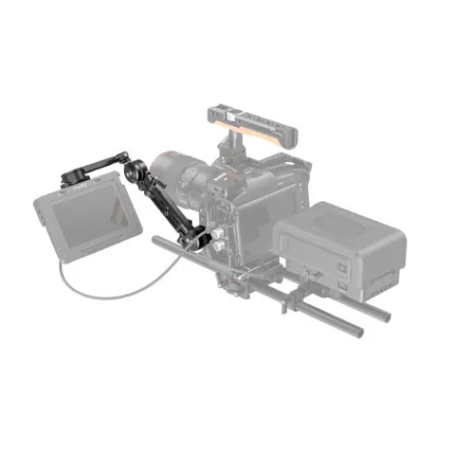The SmallRig Adjustable EVF Mount MD3507 with NATO Clamp is designed for versatile accessory mounting, enabling flexible positioning for monitors and other accessories during various shooting scenarios. It supports monitors up to 1.5kg, with 360-degree rotation across three pivot points for maximum adjustability. The spindle arm extends up to 62mm, allowing for customised viewing distances. Featuring universal NATO clamps on both ends and a NATO rail, the EVF mount offers fast assembly and disassembly. Each pivot point’s tightness is adjustable via a knob wrench, ensuring secure, stable positioning.