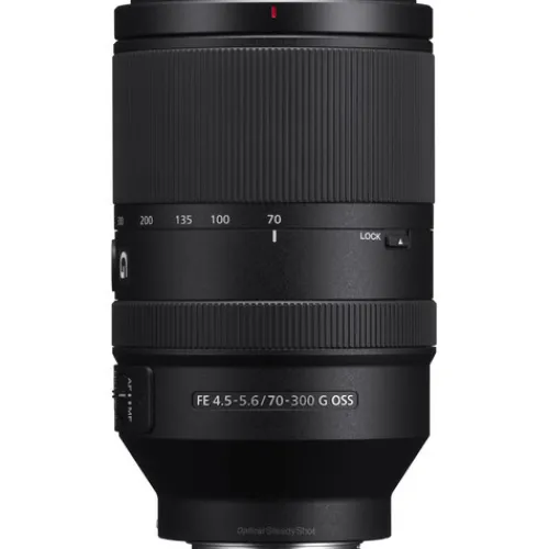 The Sony FE-70-300mm f/4.5-5.6 G OSS Lens is compatible to Sony E-Mount Cameras with both full frame and APS-C size sensors. It features a long telephoto zoom range from 70 to 300mm on a 35mm full frame or 105-450mm on an APS-C format camera, perfect for capturing wildlife and sports.