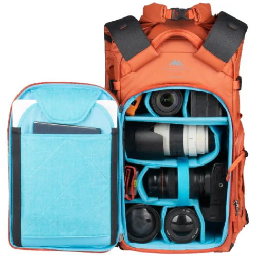 Travelling with our backpack is a breeze, thanks to the luggage passthrough at the back and the handy side and top handles. So set out on your next adventure with the Summit Creative Medium Tenzing Roll Top Camera Backpack!