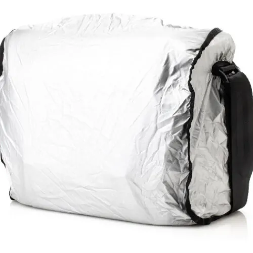 Removable and reversible WeatherWrap rain cover is silver on one side to reflect the sun on hot days and black on the other side to blend in