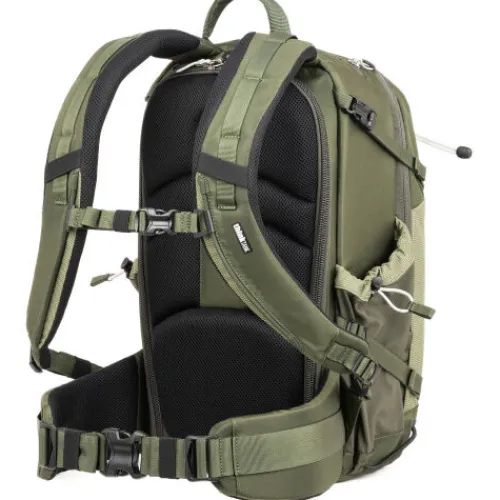Carry and protect your photography gear and personal items with the 18L Backlight Backpack in Montane Green from MindShift Gear. This pack holds two standard-sized camera bodies with lenses attached, three standard zoom lenses, and accessories. Dedicated pockets accommodate a 13″ laptop and a 10″ tablet, while front pockets with a total capacity of 5L are perfect for personal items. Large side pockets fit a water bottle and tripod, and the pack features front and side mounting systems for a tripod or monopod, along with daisy chains, ice axe loops, and lash points to expand your carrying capacity.
