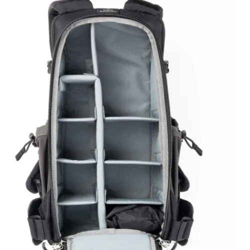 Adjustable dividers organise lenses, photo gear, or personal items