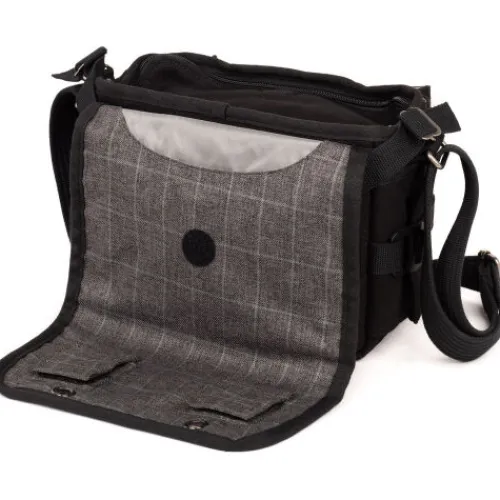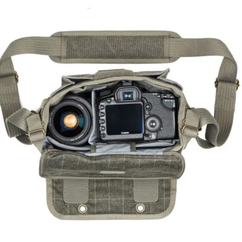 A sleek, subtle bag for photographers on the go, the black Retrospective 5 V2.0 Shoulder Bag from Think Tank offers versatile storage for camera bodies, lenses, laptops, tablets, and accessories. It comfortably holds a standard DSLR or mirrorless camera with two lenses and a 9″ tablet. The main compartment features a zippered opening that tucks away when not in use, while the hook-and-loop front flap provides quick access. A luggage handle pass-through flap on the rear makes it travel-friendly, and the front compartment with a zippered pocket keeps valuables secure. A seam-sealed rain cover ensures protection in inclement weather.