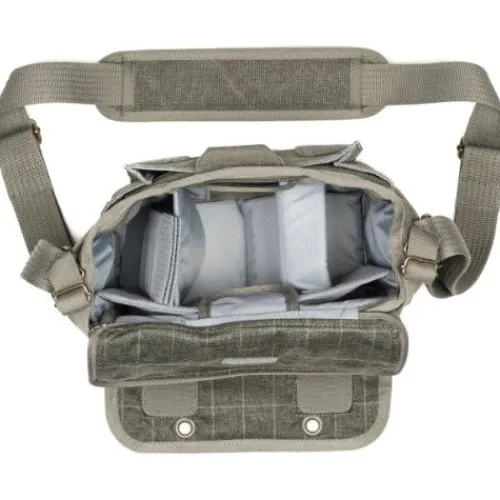 The ThinkTANK Retrospective 5 V2.0 in Pinestone is a discreet, stylish shoulder bag designed for photographers who value both form and function. Compact yet spacious, it accommodates a standard DSLR or mirrorless camera, up to two lenses, and a 23cm tablet. The main compartment features a tuck-away zippered opening and a hook-and-loop front flap for quick access. A dedicated rear pass-through flap allows for convenient attachment to luggage handles during travel. With a front compartment for accessories, an internal zippered pocket for valuables, and an included seam-sealed rain cover, this bag is built for versatility and protection in any shooting condition.
