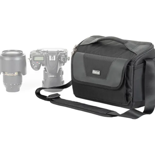 The Think Tank StoryTeller 8 is a structured shoulder bag designed to hold one DSLR or mirrorless camera body, up to four small standard zooms or prime lenses, an 8″ tablet, and other accessories. The Flip-Top lid and zippered closure provide quick and easy access to the main interior compartment, which features removable dividers, and the expandable front pocket can be used to store a tablet or additional accessories. A zippered valuables pocket is also included, as are expandable side pockets that can hold a water bottle and two dedicated memory card pockets that can be used to separate empty and full cards.