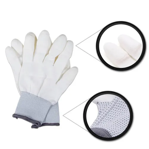 Polyurethane coated fingertips impart anti-static and anti-slip properties for an optimal grip and efficient work flow. Their anti-static property repelsdust and suppresses electrostatic charge that may short circuitdelicate and sensitive electrical equipment.
