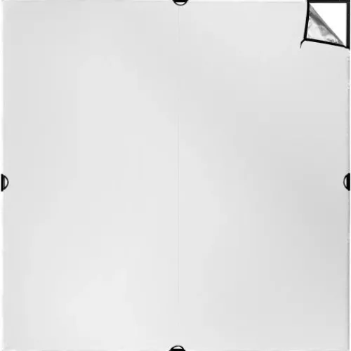 A versatile two-sided reflective fabric, the Scrim Jim Cine Silver/White Bounce Fabric from Westcottis compatible with 2.4 x 2.4m Scrim Jim Cine frames and features a heavy-duty touch fastener lining for quick setup and convenient portability. This reversible fabric has both bright, cool silver and neutral white reflective sides, allowing you to quickly switch between applications. The silver bounce side adds bright, specular highlights and an overall cooling quality while the white side produces soft, natural looking highlights.