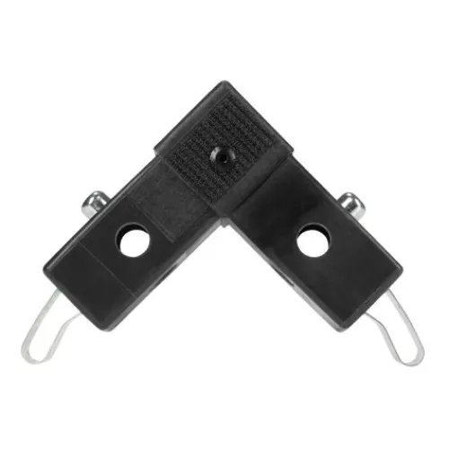 Integral to the versatile and modular system design, this Scrim Jim Cine 2D Corner Frame Connectorfrom Westcott is used to connect any two Scrim Jim Cine frame tubes at a corner for making a 2D panel, reflector, flag, or other flat light modifier. A built-in positive locking button ensures a secure connection with the frame tube and its durable construction helps to maintain rigidity throughout long shoots and day-to-day use.