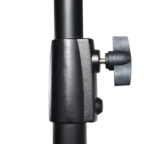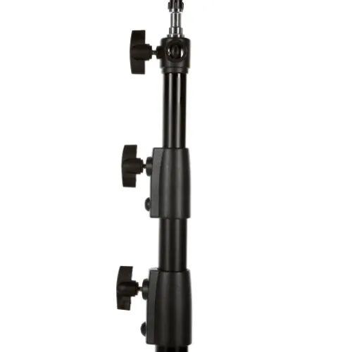This professional quality light stand is made of attractive black aluminum, making it lightweight and easy to take on location. It offers maximum support with minimum bulk and has a reversible spigot for added convenience.