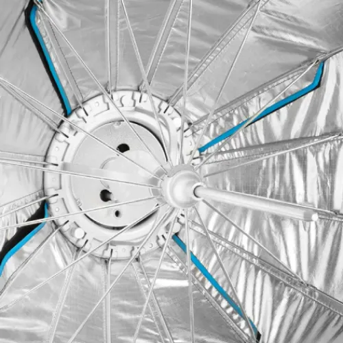 - The stippled silver lining, for even, edge-to-edge light throughout the softbox