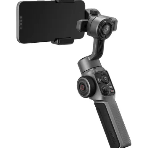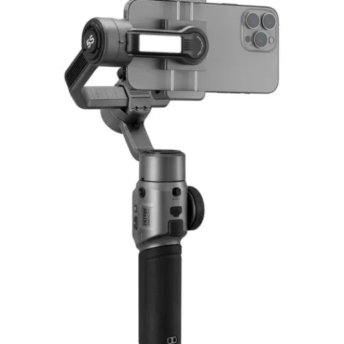 The SMOOTH 5S gimbal can accommodate smartphones measuring 5.08 to 8.89 cm wide and up to 1.01cm thick and weighing from 0.15 to 0.30 kg, enabling you to use it with select smartphone and external lens combos