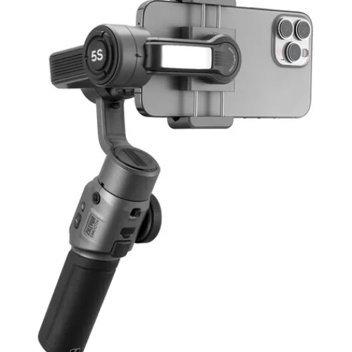 Zhiyun-Tech has improved the grey SMOOTH 5S Pro Smartphone Stabilizer with a potent integrated fill light, upgraded motors, a new algorithm, and a wider clamp. The SMOOTH 5S will even support some external lens/smartphone combinations, supporting larger smartphones weighing 0.15 to 0.30 kg, measuring 1.01 cm thick and 5.08 to 8.89 cm wide. You can create more extreme, cinematic angles if there is more room between each of the three axes.