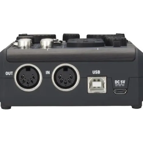 The U-24 is equipped with an essential collection of inputs and outputs for streamlined recording. Two combo inputs with independent gain knobs and multi-colour level indicators allow you to connect mics, keyboards, mixers, and more. 48V phantom power can be supplied to both inputs, and input 1 supports Hi-Z for connecting guitars, basses, or other passive instruments. MIDI input and output jacks allow you to use devices like keyboards, controllers, synthesisers, and drum machines.